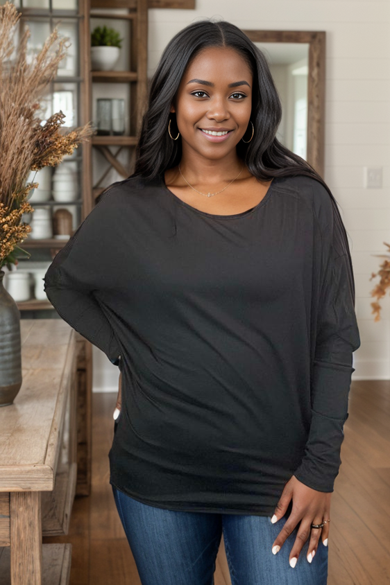 The Love For Evermore Long Sleeve top in bold black is the perfect balance of cozy and chic. With long batwing sleeves and a relaxed fit, this knit top is both comfortable and stylish, making it a must-have for any wardrobe. Featuring a round neck, it's an effortless piece to dress up or down. Love for evermore? More like love for ever-wear!