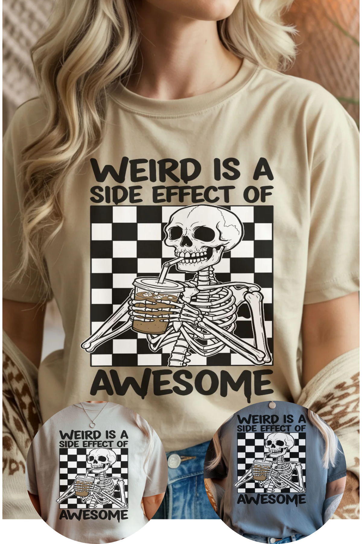 Weird Side Effects tee features a striking skull print on a checkered background, symbolizing the eternal battle between light and darkness. With short sleeves and a round neckline, this shirt combines comfort with a meaningful message of faith and perseverance. Wear it as a testament to your spiritual strength amidst life’s trials.